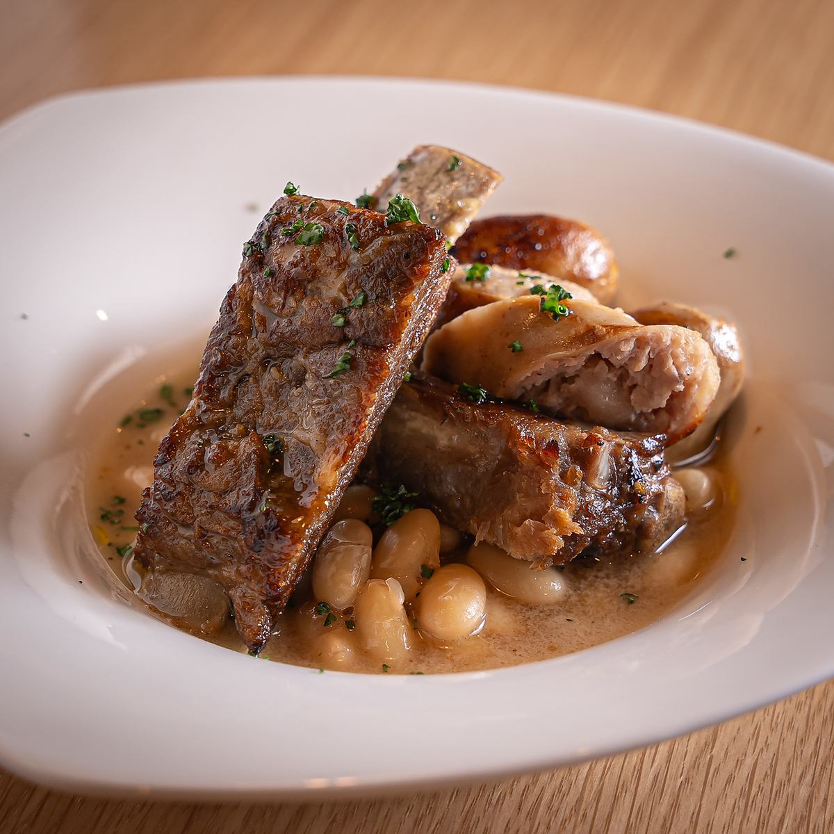 烹調得恰到好處的多汁排骨。肉質外脆內香,入口即化。它與白豆完美搭配,濃鬱的醬汁讓整道菜更加完美。請享用這道適合休閒又時尚的飲酒場合的菜餚!